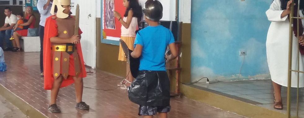 En días pasados los estudiantes del colegio dramatizaron la pasión, muerte y resurrección de nuestro señor Jesús, esto se dió como parte de la celebración de la Semana Santa.